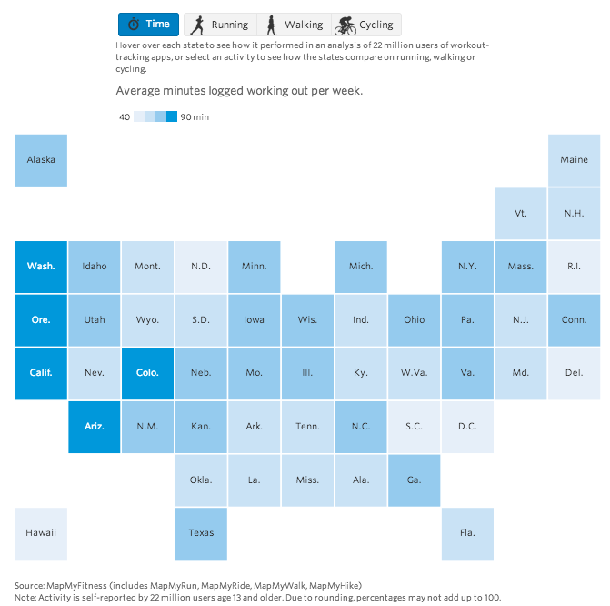 Explore in which U.S. states people exercise most and least: http://on.wsj.com/1PT2dcT pic.twitter.com/Uymq7L0So1