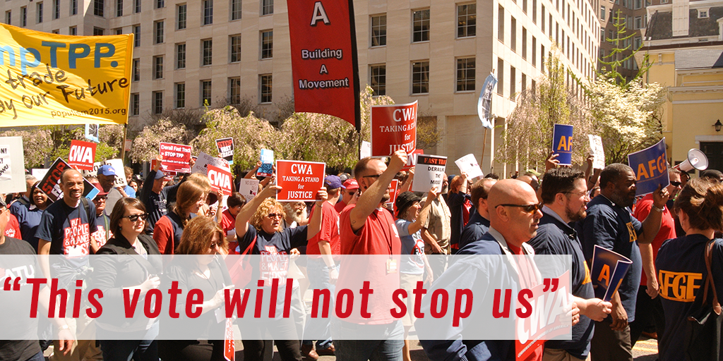 @WSJ Those voting 4 Fast Track today have seriously misjudged the will of American people: http://go.cwa.net/1JXs5Rm pic.twitter.com/NSMtmi6DzC