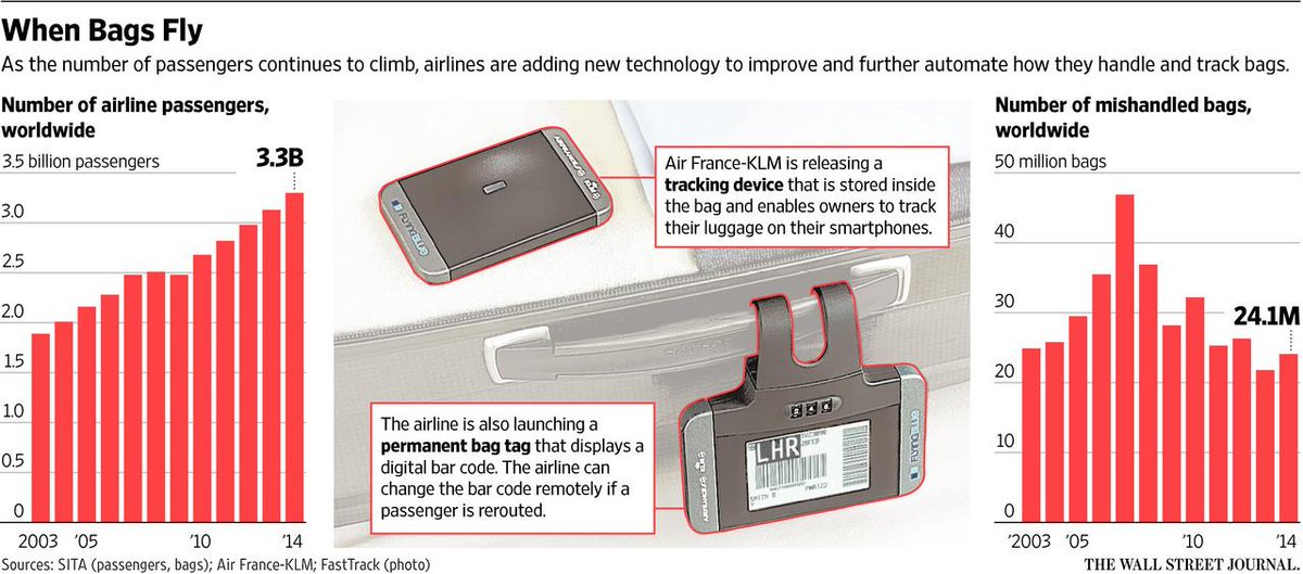 More than a third of global airlines ask fliers to tag their bags, up from 13% in 2009 http://on.wsj.com/1Nyju5K pic.twitter.com/ee9tauVhxr