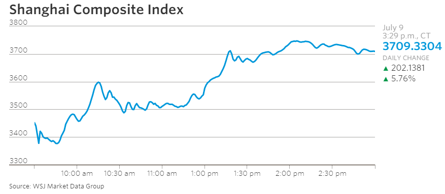 China stock gains gather pace after latest regulatory moves http://on.wsj.com/1UDr6JD pic.twitter.com/xyKWuEyEev