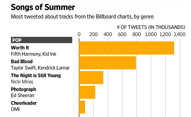 @WSJ These are the biggest songs of the summer, according to Twitter. Fifth Harmony's Worth It http://on.wsj.com/1JRwtBI pic.twitter.com/YWTcIpvXwO
