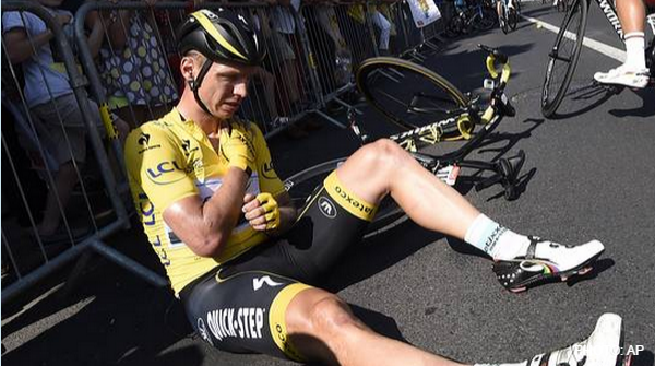 Tour de France: Another leader bites the dust http://on.wsj.com/1Mk5fRD  via @WSJDailyFixpic.twitter.com/X4JYPJ8oY7
