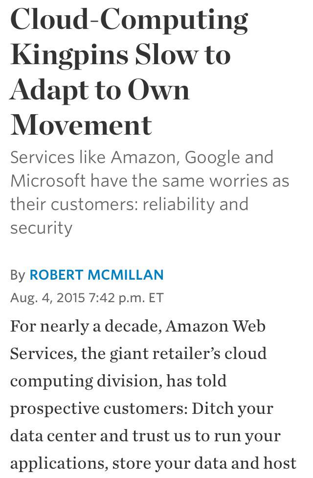Cloud kingpins slow to adapt to own movement ―@WSJ ▸ http://on.wsj.com/1MNBGdJ #DevOps #IoT #Containers #Microservicespic.twitter.com/KAGZBcz4ks