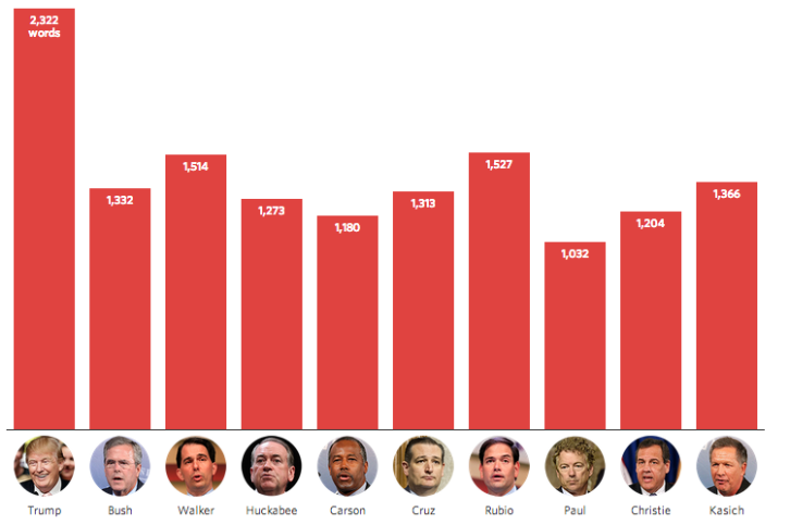Here's how much each candidate spoke throughout the #GOPDebate: http://on.wsj.com/1MVvIaF @WSJpic.twitter.com/bcTaj3xDGA