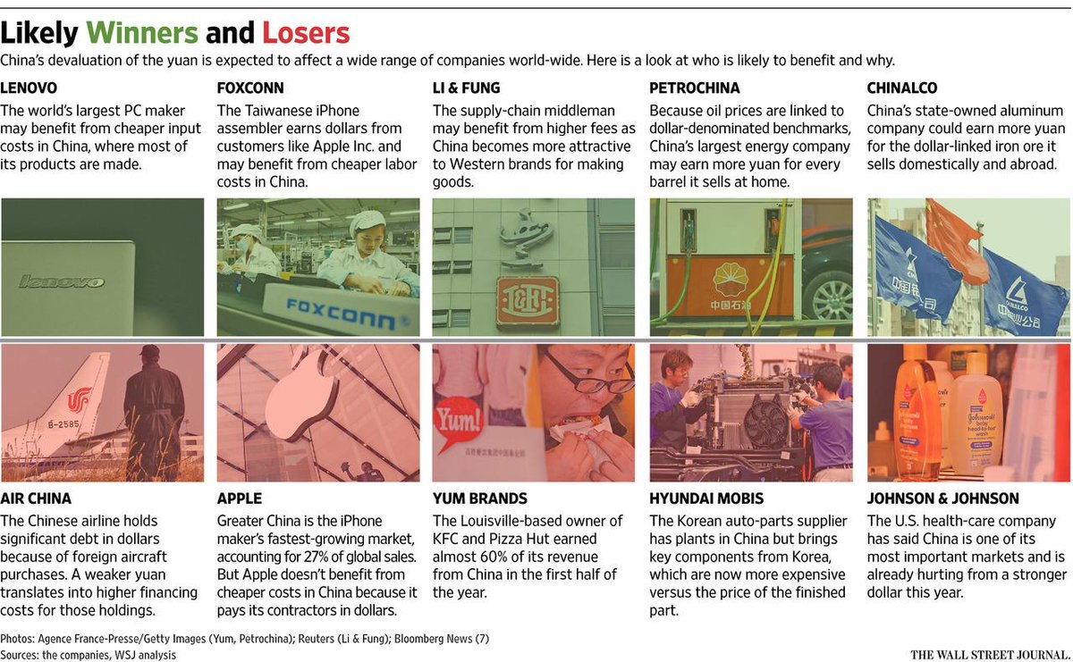 Here are the potential corporate winners and losers from China’s devalued yuan http://on.wsj.com/1MnxbYe pic.twitter.com/prhuSI0GfT