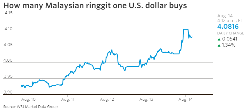 Malaysia’s ringgit suffered its largest one-day loss in almost two decades http://on.wsj.com/1DS2IyB pic.twitter.com/4En5p6K5RQ