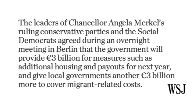 @WSJ "US should pay Germany 50% of D $6.7b it's ALLOCATING to cover D cost of housing REFUGEES 'we've' CREATED with our TERRORISM."Thanks. Twitter will use this to make your timeline better. UndoUndo