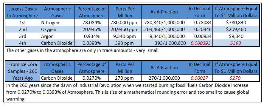 @WSJ NOAA info and Graphic from Wikipedia is older I upgraded table to show CO2 at 393ppm = 0.0393% of atmosphere.