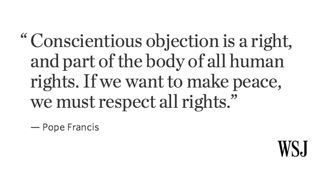 @WSJ DO YOU KNOW YOUR DUMB DID YOU KNOW THAT? Conscientious objection applies to abstaining from any activity under duress of conscience -