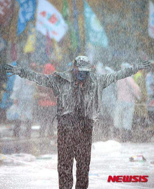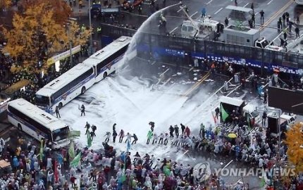@WSJ 130000 S Korea protesters clash with police in Seoul. K. Gov. use chemical watergun to protect president Park.pic.twitter.com/Og6WInblKz