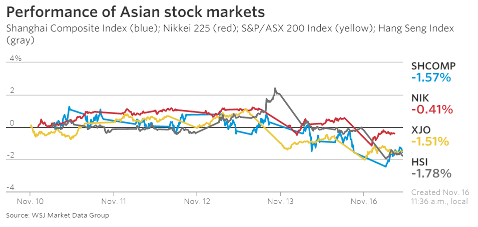 Asian markets slide after Paris attacks http://on.wsj.com/1OaUyTe pic.twitter.com/IVLvje74vz
