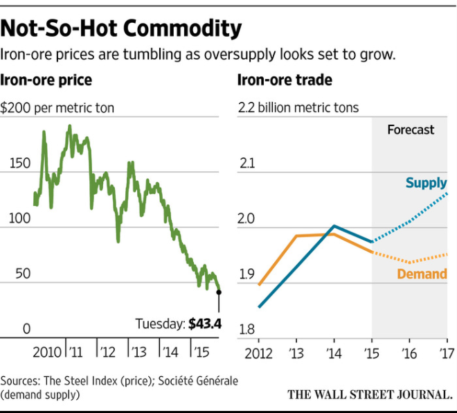 Iron ore crash turns up heat on miners http://on.wsj.com/1MBUStT pic.twitter.com/AGFtUSfxIv