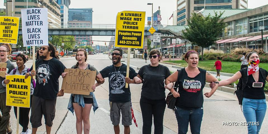 @WSJ Marching down Pratt Street at Inner Harbor. Really in the thick of it, huh?
