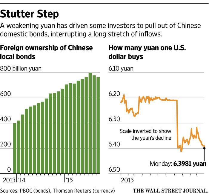 Foreigners pull back from Chinese bonds in run up to IMF Decision http://on.wsj.com/1MSRV8n pic.twitter.com/3AyvFNXUsO