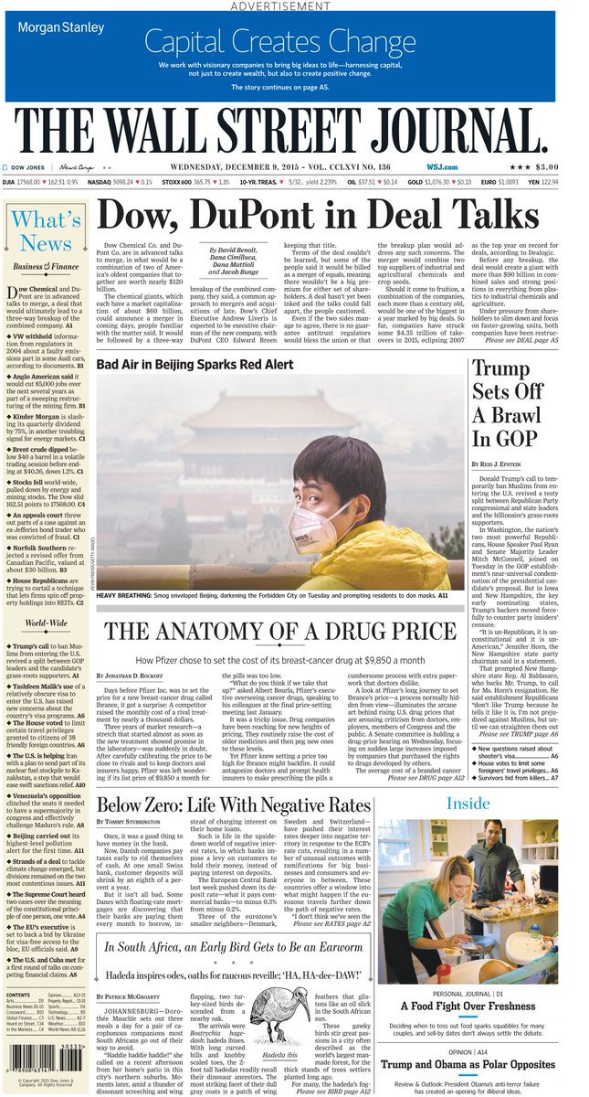 Take an early look at the front page of The Wall Street Journal http://on.wsj.com/1NKSXAF pic.twitter.com/wKtxTDXCQs