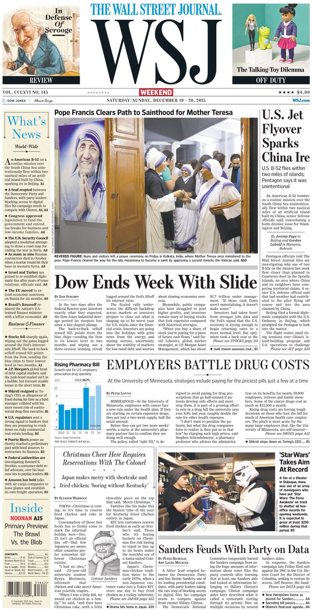 Here's an early look at the front page of The Wall Street Journal's weekend edition. http://on.wsj.com/1RuLZXr pic.twitter.com/Q4ENlBbujf