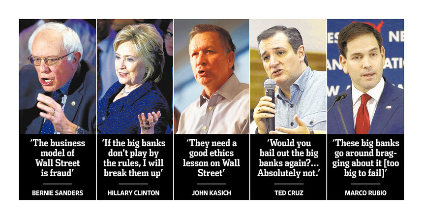 @WSJ It's all rhetoric. All of them take money from the big banks. -