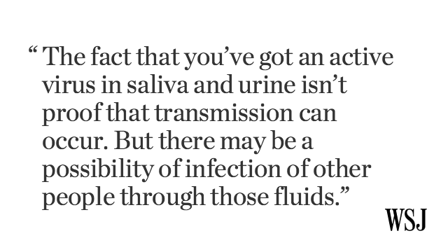 RT @WSJ: Brazil health researchers: Zika virus "active" in saliva, urine - http://on.wsj.com/1Sxo0bk pic.twitter.com/PmxCh1UTs6