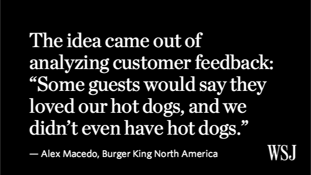 @WSJ: Burger King to start selling hot dogs http://on.wsj.com/1TcIq99 pic.twitter.com/2ffs5yzHu0”#GreatIdea#NeedGoodHotDog