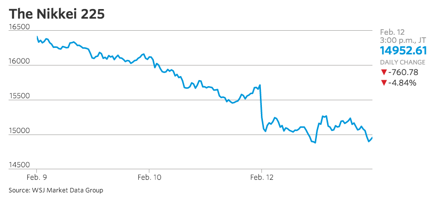 Japanese stocks fall to lowest level in more than a year http://on.wsj.com/20YRmQZ pic.twitter.com/sJxjsmZcnG