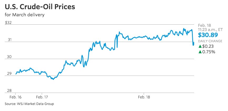 RT @WSJ: Oil prices recede as U.S. inventory report points to another increase in ... http://on.wsj.com/1TsCokP pic.twitter.com/Bnu9I0tpRC