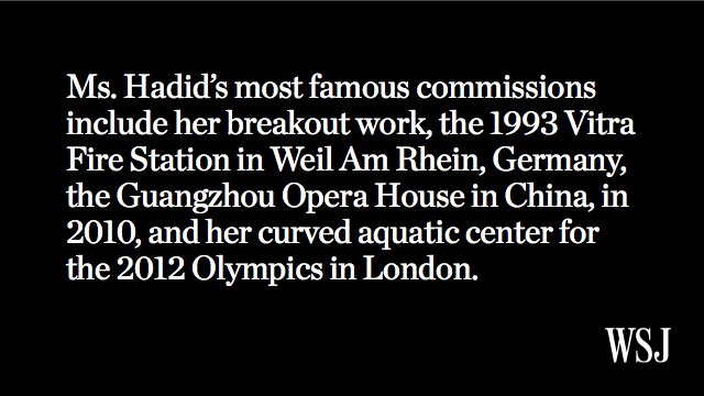 @WSJ Tremendous loss of an brilliant, incredibly talented architect and designer. Big loss to the world. May Zaha Hadid RIP