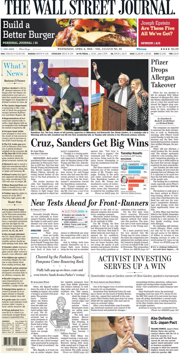 @WSJ The front page of today looks very different to frequent pages with the repeated faces of Donald and Hillary...