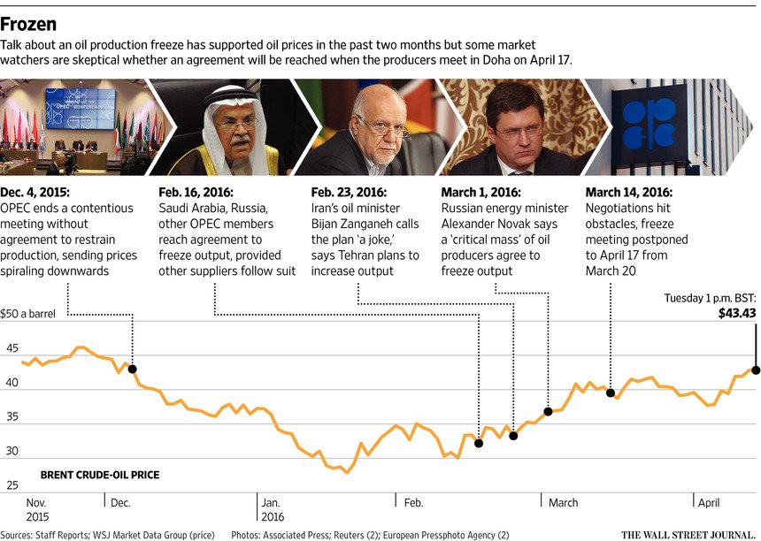 Investors on edge ahead of oil producers’ Doha meeting http://on.wsj.com/1WpyKJ2  🔓pic.twitter.com/ewJtUrD3uT