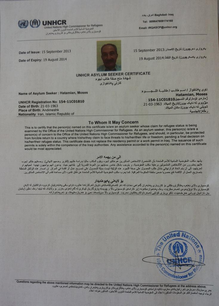 @WSJ @WSJPolitics @RefugeesChief @POTUS @amnesty Hi,I am under house arrest!By embassy Iran&UNHCR, IRAQ,since2013pic.twitter.com/MjV5eA0WqG