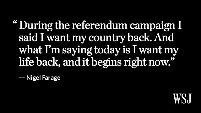 RT @WSJ: Nigel Farage resigns as UKIP leader after Brexit vote