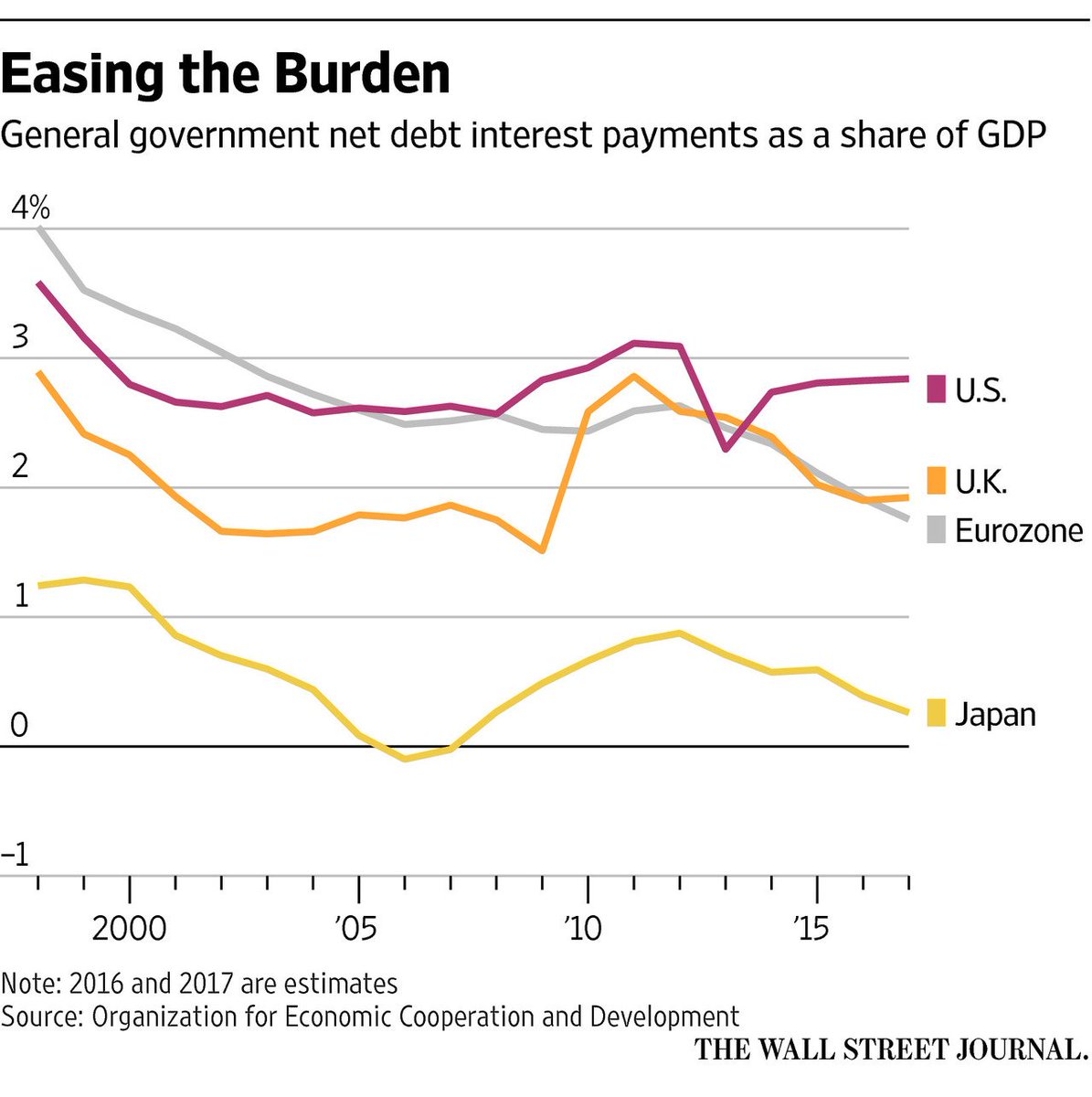 How plummeting bond yields are enabling cash-strapped governments to reduce their deficits. http://on.wsj.com/29UzqGq pic.twitter.com/l03XTiPSKx