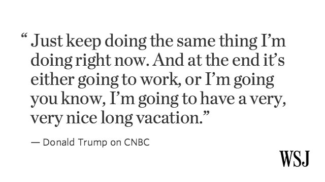 @therealdonald Have a nice long vacation!Thanks. Twitter will use this to make your timeline better. UndoUndo