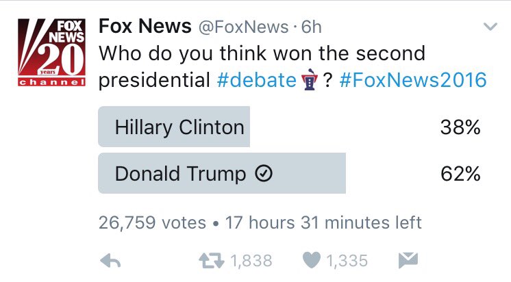 @realDonaldTrump NAILED THAT DEBATE.@HillaryClinton revealed for the lying crook she is.Thanks. Twitter will use this to make your timeline better. UndoUndo