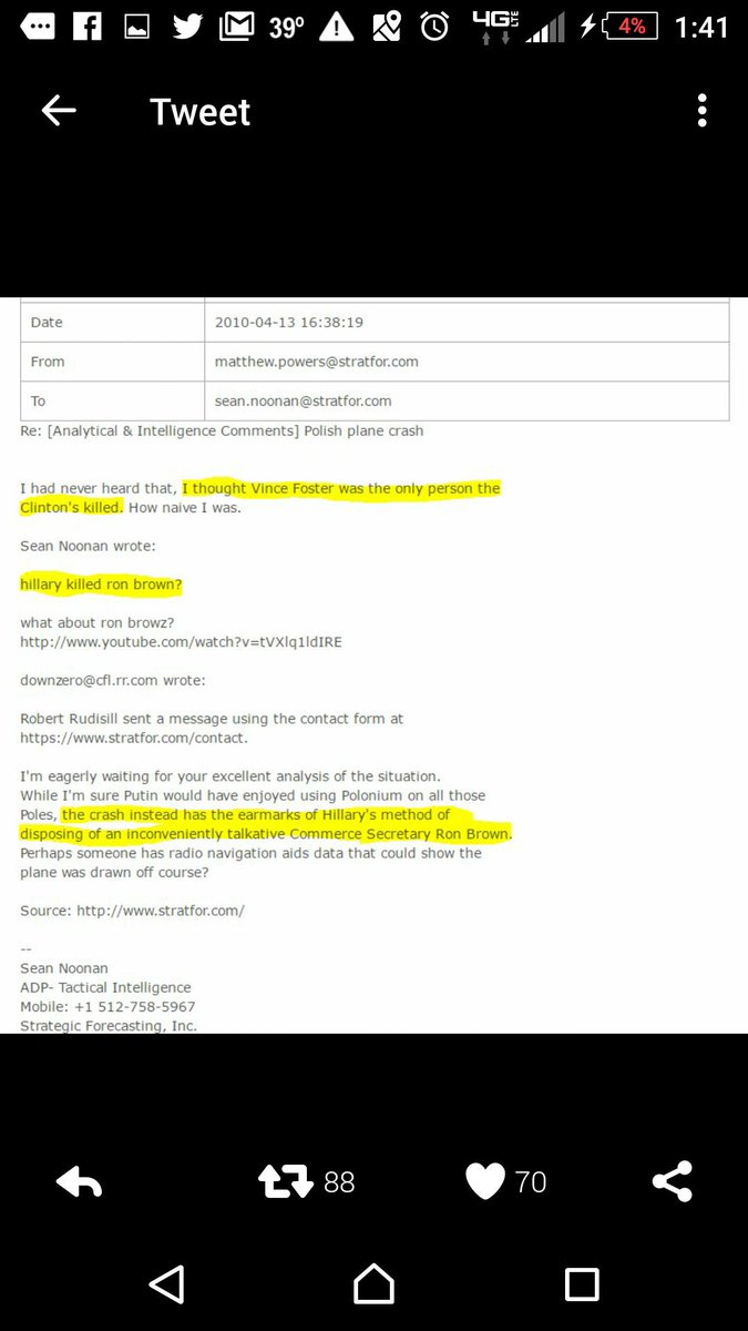 U.S. Intelligence report says Hillary Clinton killed Vince Foster & probably also Ron Brown. PLEASE do your job & report.