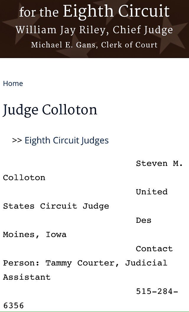 @realDonaldTrump Review the credentials of the Eighth Circuit Court of Appeals' Judge Steven Michael Colloton. https://en.m.wikipedia.org/wiki/Steven_Colloton …pic.twitter.com/DYTCTvRc1y