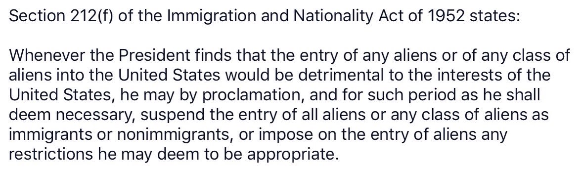 does'nt the McCarran-Walter Act (Immigration & Nationality act of 1952) allow Trump to do what he did by use executive orders?
