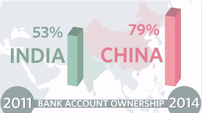 Bank account penetration rate in India will go past the Chinese level by 2019.