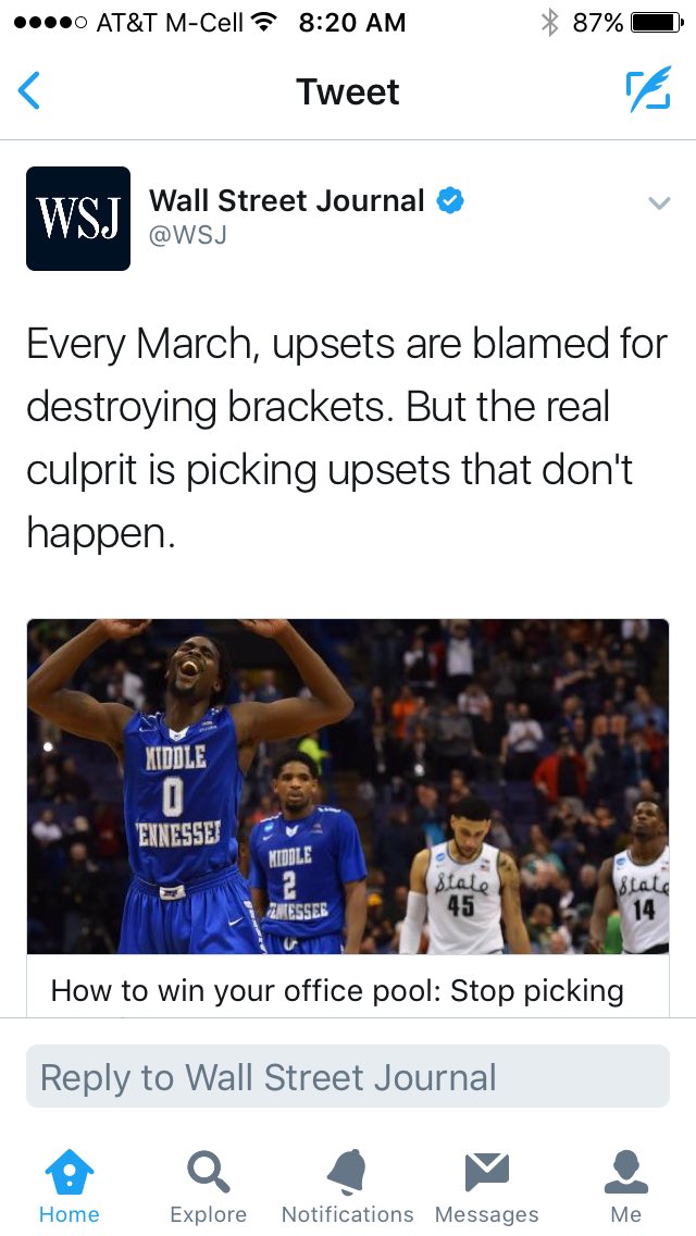 @wsj of#MTSU men's basketball success in the 2016 NCAA tournament and what it did to brackets nationwide.pic.twitter.com/uX3kv9BhWJ
