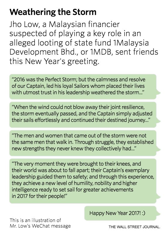 To whom is Jho Low referring as "captain" in WeChat messages to friends? Himself or Malaysian Prime Minister Najib? http://on.wsj.com/2mqRYV0 pic.twitter.com/QFFcpWmkUL