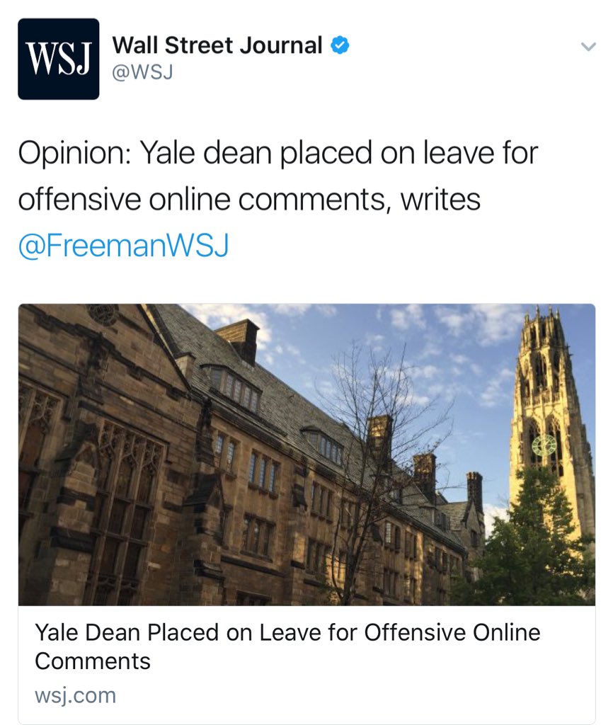 At least their draconian free speech ordinances at Yale apply to all #relieved