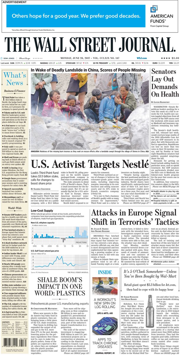Take an early look at the front page of The Wall Street Journal http://www.wsj.com pic.twitter.com/7drMppM7vy
