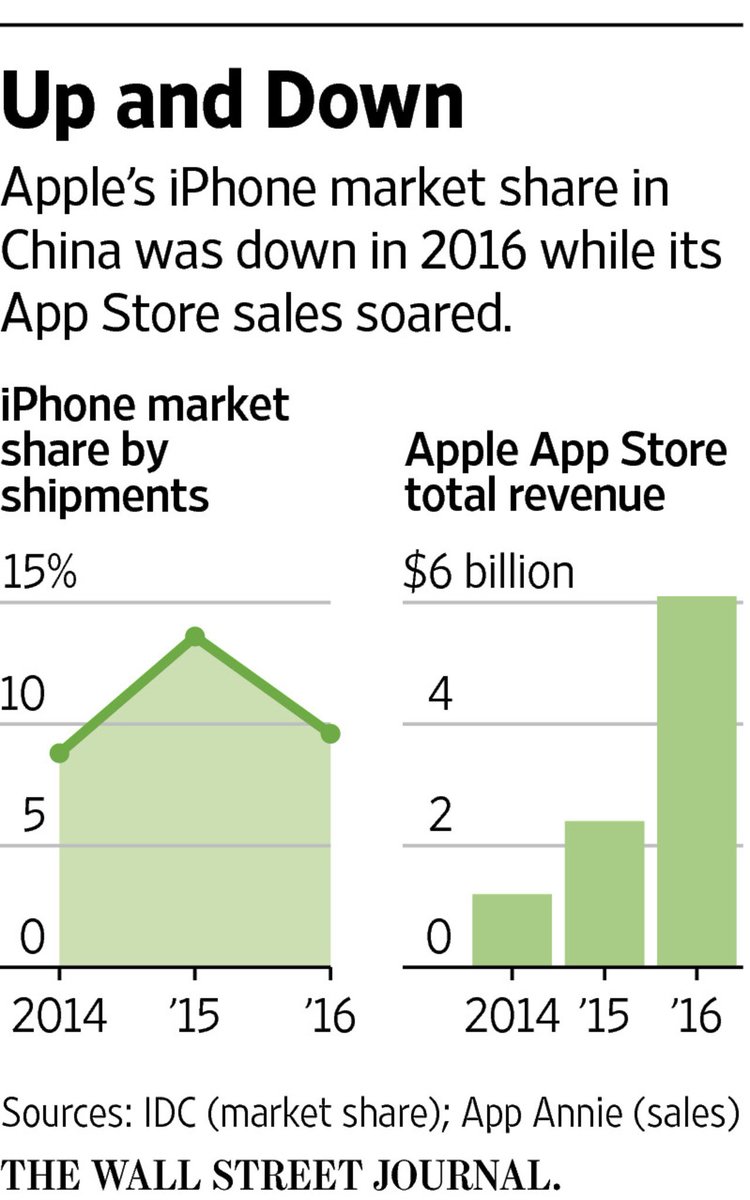 Apple has succeeded in China because it was viewed as a hardware company, but now it's a content provider as well http://on.wsj.com/2vDHTb3 pic.twitter.com/H8sjvxWUW1
