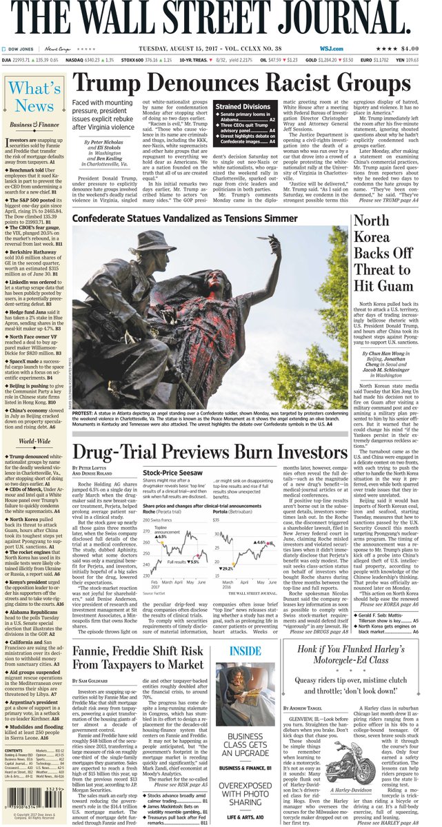 Headline should be: "After being pressured, Trump denounces racist groups"