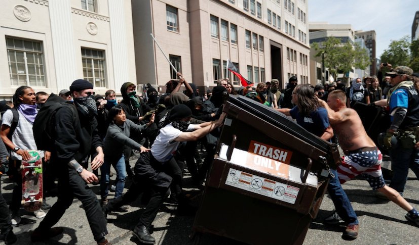 ANTIF in attacking peaceful marchers and Police in Berkeley yesterday proved President Trump Right "Violence on Many Sides"pic.twitter.com/3qiGlpNCyP