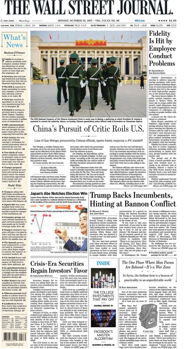 【华尔街日报】头版刊登中共政府跨境执法,文贵上头条了,世界将竞相追逐报道这一十九大期间的新闻热点,这回才是真正的刚刚开始@KwokMilespic.twitter.com/3HAZboXwzl
