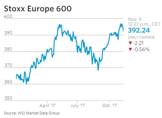 European stocks, U.S. futures trade lower after Wall Street records http://on.wsj.com/2yKxSv8 pic.twitter.com/YcclMmDYyd