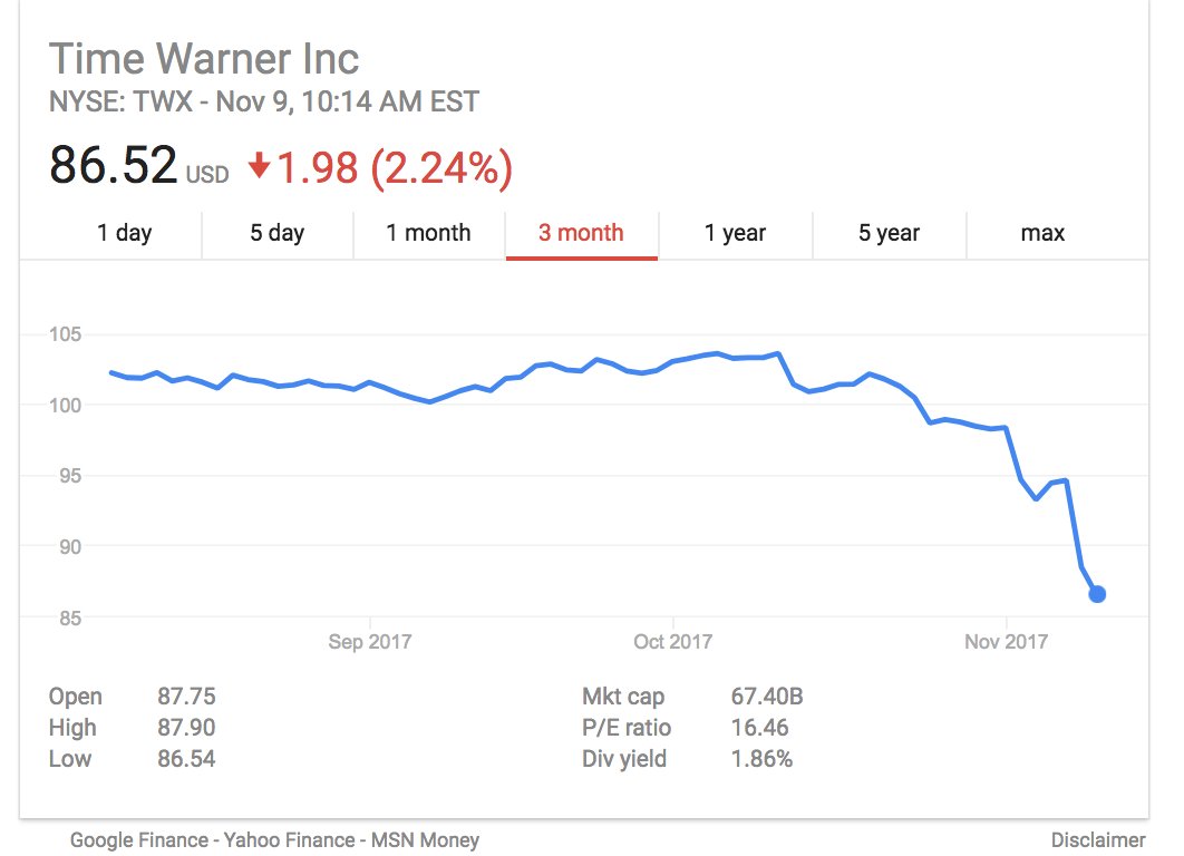 Looks like a great opportunity to buy TWX. The downside is that with Disney buying Fox, it doesn't leave many players. Hey,