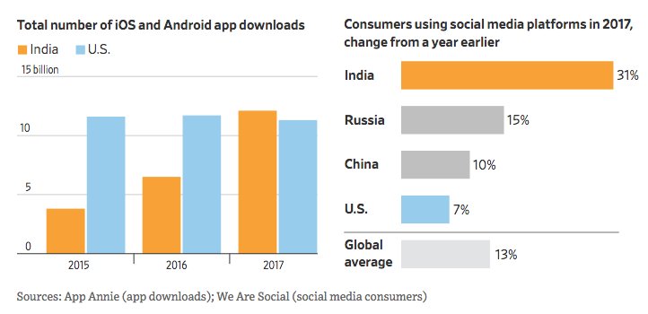 Data should be dependent on Ratio of Internet users vs App downloads. If you consider ratio then USA and UK will come on top not India and China. And coming to topic of Russia, do you really think Russia with smaller population then China will come on top?