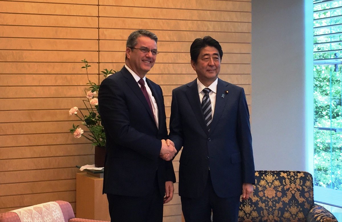 Always an honour to meet PM Abe. Great to hear his support for the WTO & the multilateral trading system: https://goo.gl/qPtJY2 pic.twitter.com/T66JK8MtHG