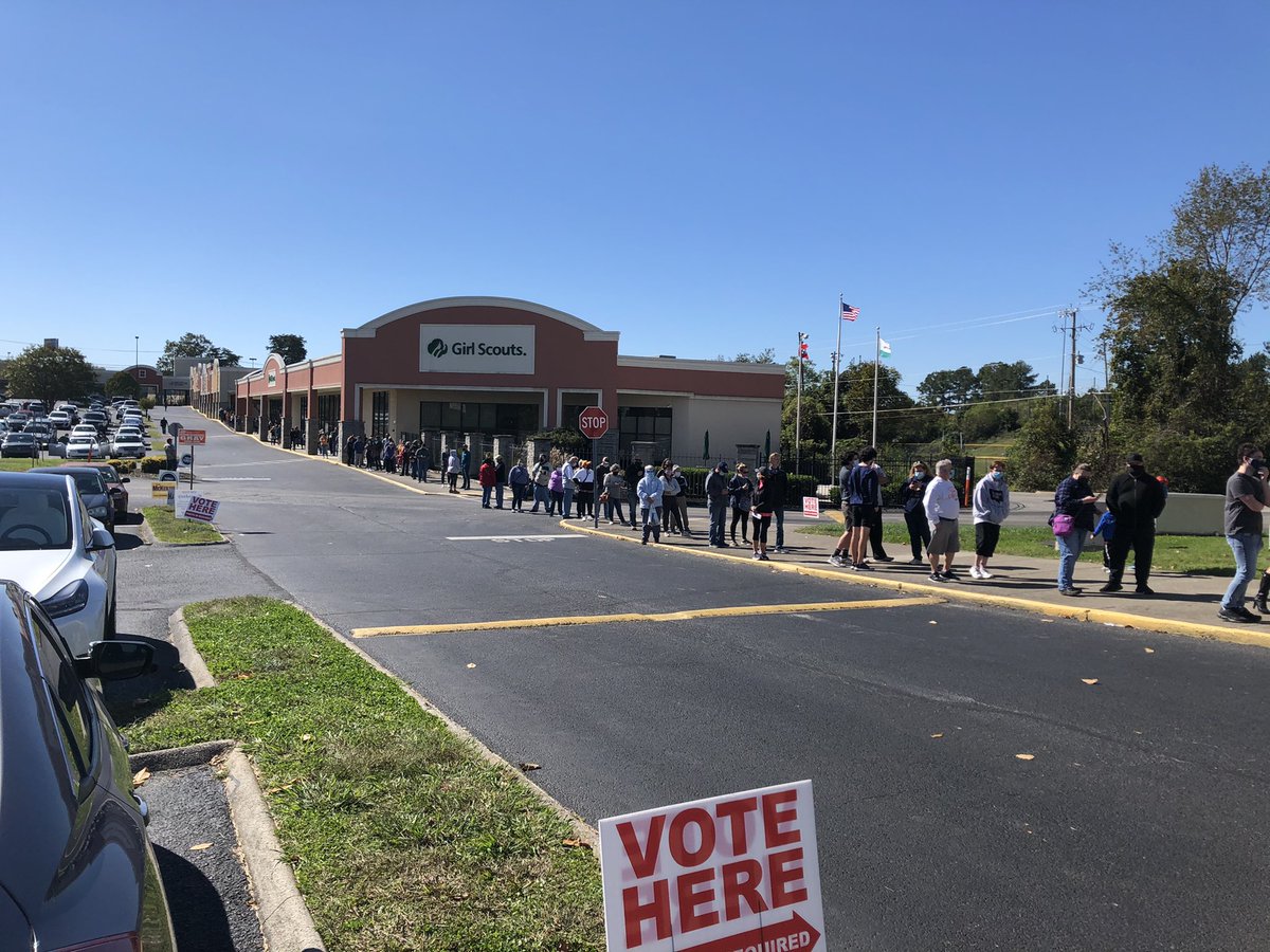 Death, taxes, and apparently long early voting lines. Polls opened in Knox County at 11 this morning and lines at Downtown West, already matching that of earlier this week. @wvltpic.twitter.com/niTFKRnLAO